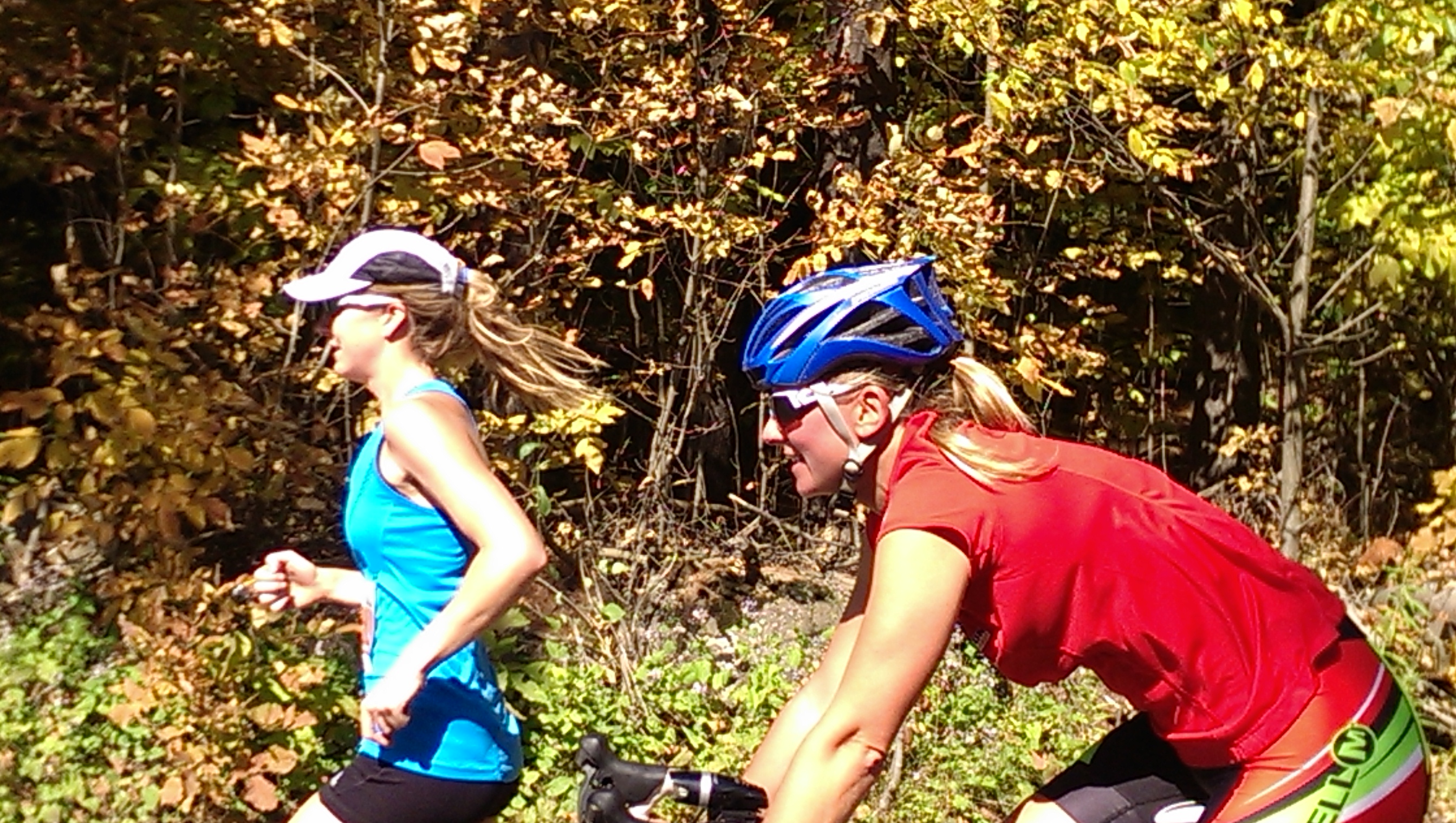 D’où te vient l’intérêt pour le triathlon? En as-tu déjà fait? Mon intérêt pour le triathlon me vient de mes deux grands frères, Maxime et Mathieu. Ils sont mes plus grandes sources d’inspiration! En fait, je les copie beaucoup… En 2011, mes frères se sont inscrits à la première édition du Ironman de Tremblant, qui eut lieu en août 2012. À cette époque, j’habitais à Québec, comme mon frère Mathieu et nous travaillions ensemble, lui comme pharmacien et moi, comme technicienne en laboratoire. Comme nous avions pratiquement les mêmes horaires de travail, nous allions nous entraîner ensemble au PEPS de l’Université Laval. Ayant fait de la natation plus jeune, au départ, c’est moi qui aidais Mathieu dans les entraînements de natation. Ça n’a pas été trop long qu’il a pris de la vitesse sur moi ! Nous allions également faire de la course sur la piste d’athlétisme. Les différents entraînements avec mon frère m’ont donné le goût d’essayer le triathlon et c’est là que je me suis acheté mon premier vélo de route, que j’appelle affectueusement Rocky! J’ai fait ma première expérience de triathlons sprint cet été-là et j’ai adoré ! Le 19 août suivant, mes frères ont complété ensemble le Ironman de Tremblant. J’ai trouvé l’événement et l’ambiance extraordinaires et je me suis dit qu’un jour, moi aussi je réussirais l’exploit. Au début de l’été 2014, j’avais une belle saison de triathlon en vue, alors que j’avais choisi les triathlons que je voulais compléter. Toutefois, avec les 12 triathlons que j’ai couverts, je n’ai pas pu participer à aucun d’entre eux. Un mal pour un bien!