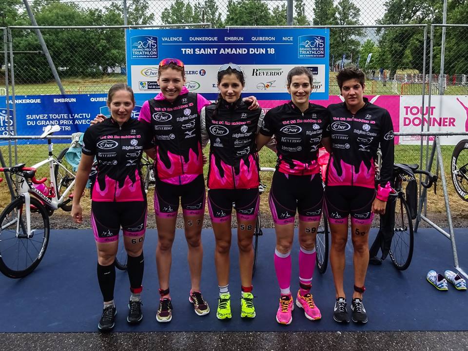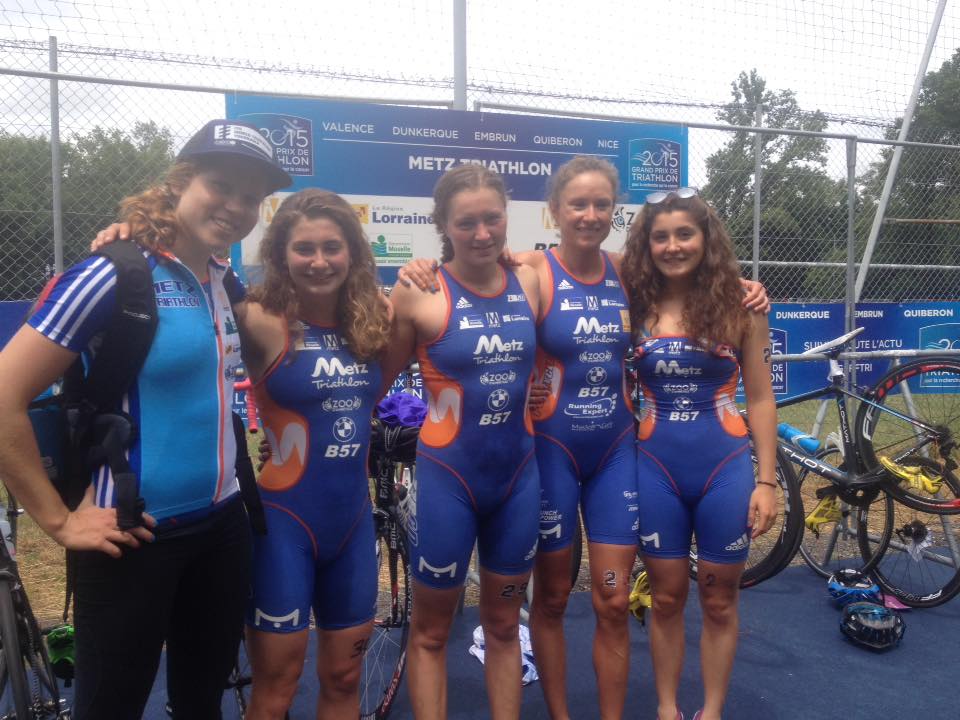 Sarah-Ann Brault (à gauche) et son équipe de Metz Triathlon
