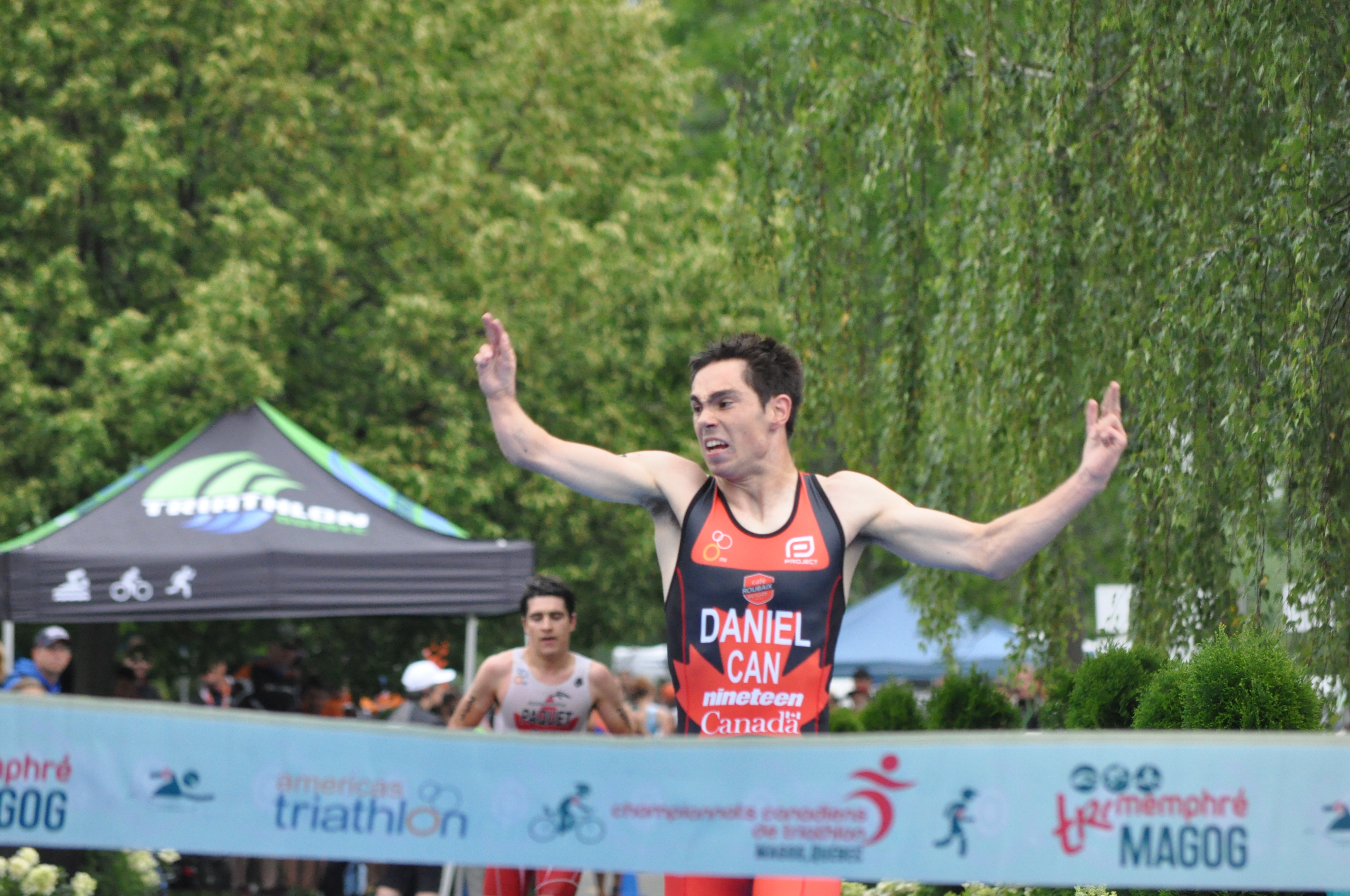 Chez les juniors, tous les espoirs étaient permis jusqu’à la toute fin alors que le Québécois Charles Paquet et l’Albertain Stefan Daniel se sont livrés une chaude lutte tout au long de la portion de course à pied. C’est finalement Daniel qui a eu le dessus lors du sprint final. Paquet a dû se contenter de la médaille d’argent, lui qui garde en ligne de mire les championnats du monde juniors qui auront lieu à Chicago en septembre. Edouard Garneau, Jérémy Obrand et Félix Plourde-Couture ont respectivement terminé 7e, 8e et 10e pour compléter une belle performance collective des Québécois dans cette catégorie.
