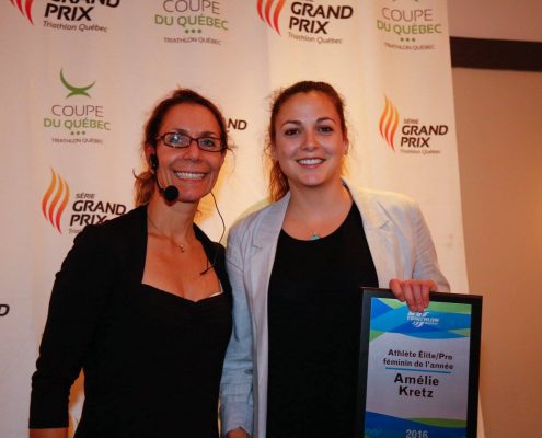 Samedi, le 19 novembre 2016, Terrebonne – Samedi dernier se tenait l’annuel gala de Triathlon Québec à l’Impéria Hôtel & Suites de Terrebonne. La soirée s’est ouverte avec l’accueil chaleureux de nos deux olympiennes, Sarah-Anne Brault et Amélie Kretz, qui ont donné le ton à un gala sous le thème de l’olympisme, organisé et animé de main de maître par le club de Triathlon Rive-Nord.
