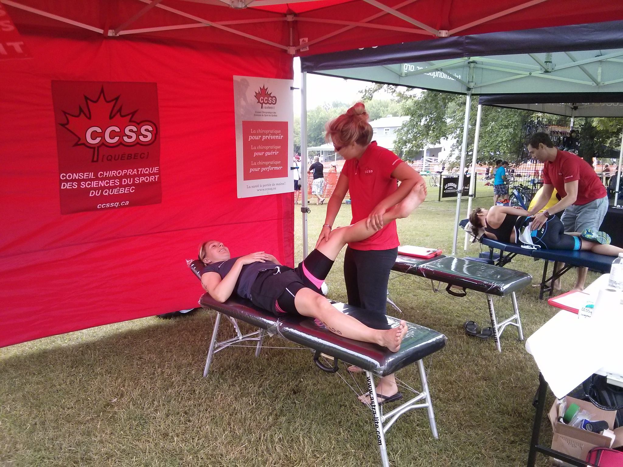 On vous invite donc à aller à la rencontre des chiropraticiens et ainsi vous pourrez recevoir des soins de qualité pour améliorer votre bien-être et vos performances! Il vous suffit de repérer notre tente rouge Chiropratique du Sport adjacente à celle de Triathlon Québec.