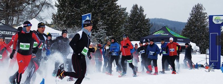 Le triathlon d’hiver format standard consiste à compléter 5 km de course en raquette, 12 km en patin et 8 km en ski de fond. Des formules plus courtes ou en équipe sont aussi proposées. Discipline sportive relativement jeune, le triathlon d’hiver a vu le jour au Québec en 2014 et connaît depuis une importante croissance dans la province et ailleurs.