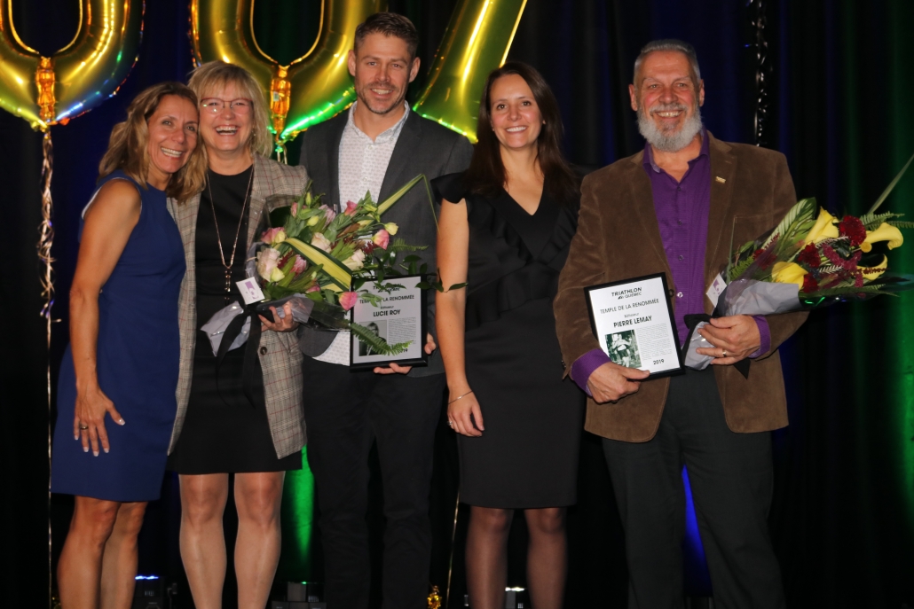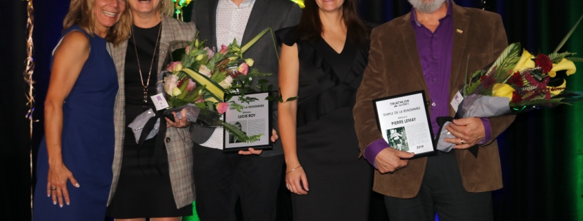 Deux nouveaux intronisés ont fait leurs entrées au Temple de la Renommée de Triathlon Québec: Pierre Lemay et Lucie Roy. C’est avec beaucoup d’émotions qu’un hommage leur a été rendu, soulignant l’apport exceptionnel des deux nouveaux intemporels, au développement du triathlon partout au Québec. Éric Noël, directeur technique chez Triathlon Québec à dresser l’impressionnante feuille de route de Monsieur Lemay qui a travaillé plusieurs années afin de rendre le triathlon accessible aux jeunes athlètes. Benoît-Hugo St-Pierre et Karen Lamothe ont parlé avec leurs cœurs de Lucie Roy et de ses réalisations, en racontant plusieurs anecdotes.