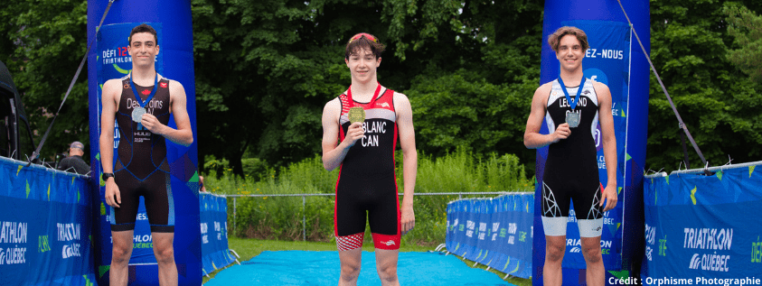 Sur le plan sportif, c’est le local de l’étape, Alexandre Leblanc, qui s’impose avec un temps de 1h01’31” devant son compère de l’Équipe du Québec, Olivier Desjardins (1h04’11”) du club Hippocampe. Le podium est complété par Charles-Antoine Legrand (1h06’31”). Chez les femmes, la victoire revient à la jeune Léa Pelletier (1h12’314”) de Jet triathlon. Elle est accompagnée sur le podium par l’athlète du club organisateur, Émy Sarrazin, (1h13’41”) et par Arianne Bijould (1h13’41”), la photo d’arrivée ayant été nécessaire pour départager les deux athlètes.