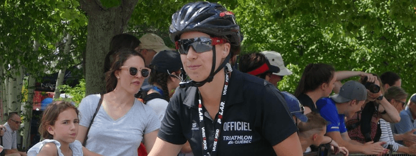 Marylène Prince : J’ai commencé ma formation en 2013. Cela fait maintenant 3 ans que j’ai le niveau NTO ce qui me permet de participer aux événements de tous les niveaux au Canada. Jusqu’à présent, j’ai eu la chance d’officier à tous les niveaux que le Québec propose. J’ai pu attacher des souliers de course dans des triathlons scolaires, expliquer à certains d’entre vous qu’il est plus facile de mettre un chandail avant le casque de vélo sur des événements régionaux, d’annoncer à votre grand désespoir que le port de la combinaison isothermique ne sera pas permis à des événements d’envergure internationale et bien sûr, de justifier par vidéo une pénalité donnée à un olympien sur un évènement de la Série mondiale.