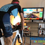 Le rendez-vous était donc donné hier matin à 8h00 pour les 12 équipes et les 11 participants en solo de cette première édition virtuelle du Défi 12 heures. Avant de donner le départ officiel de l’évènement, nous avions le plaisir d’accueillir en direct notre présidente Sophie Yergeau, notre directrice générale Marie-Eve Sullivan et bien entendu, celui qui a accepté pour une 4ème année d’être le porte-parole de l’évènement, l’humoriste et IronMan, Maxim Martin. Une fois les athlètes accueillis comme il se doit, tout ce beau monde prenait place sur le circuit Tempus Fugit de Watopia. Un circuit volontairement plat afin de voir le nombre de kilomètres parcourus exploser, et on peut dire que l’objectif a été plus que rempli !