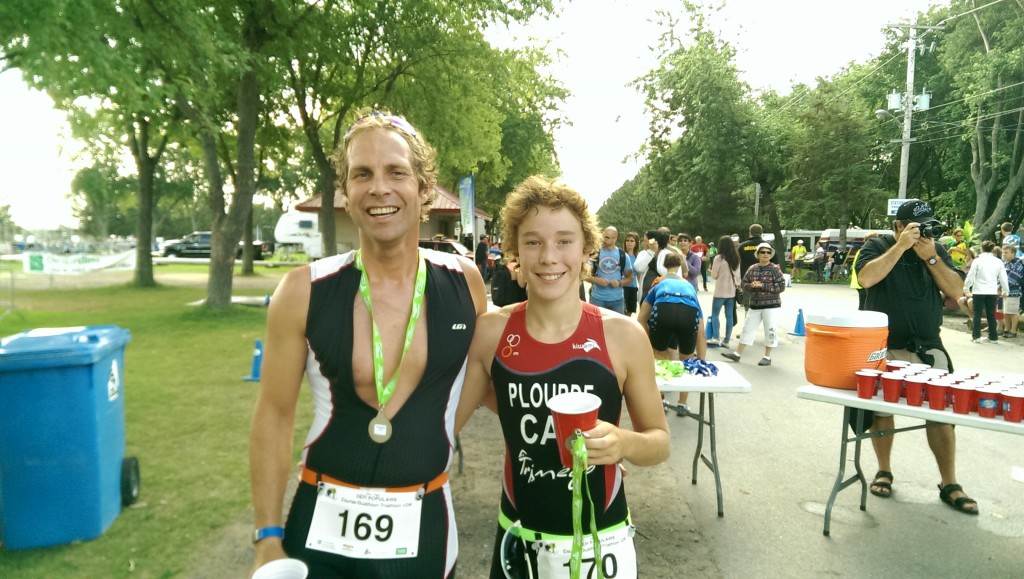 Étienne Chevrier St-Lazare a remporté les grands honneurs de la distance sprint au triathlon avec un temps de 1 :04 :48. Quant au super sprint, si l’an dernier Kevin Plourde a devancé son fils pour remporter l’épreuve, cette année, la jeunesse a dépassé la sagesse! En effet Félix Plourde a volé le titre du paternel en remportant l’épreuve devant son père avec un écart de 1 minutes 43 secondes. Quelle belle relève !