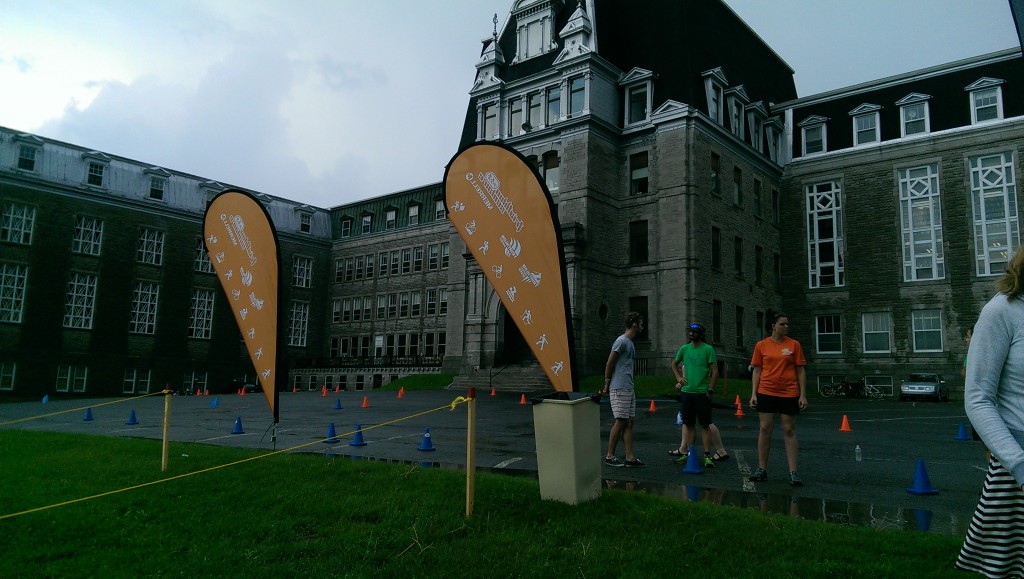 La course prenait place entièrement sur le terrain de l’école. Le club Tri-o-Lac y était avec ses bénévoles ; oranges et melon d’eau étaient servis au enfants en fin de course.  Le DJ a même fait un clin d’œil à dame nature en nous faisant jouer des airs pluvieux:  It’s raining man, Oh no it’s raining again, raindrops keeps falling on my head….!